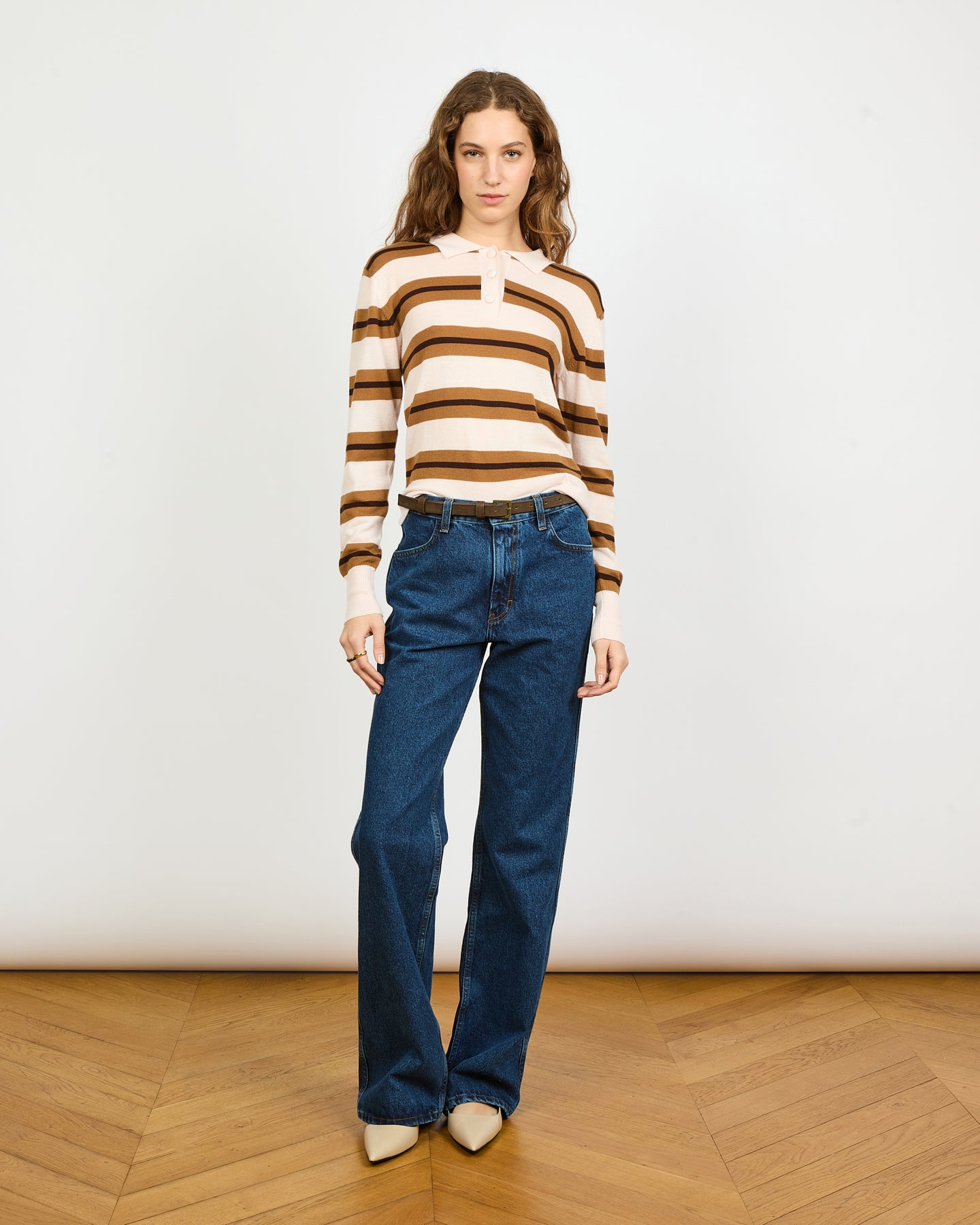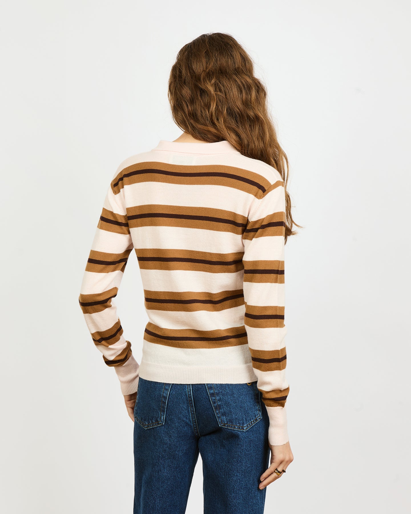 - Long-sleeved striped polo shirt