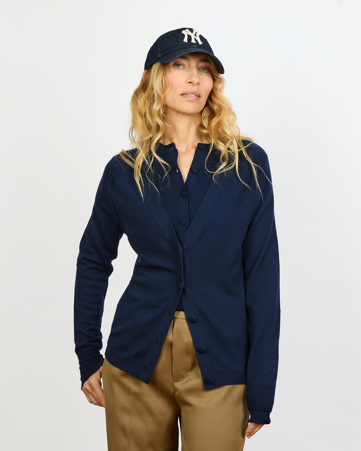 The Julien cardigan is straight and falls to the hips.