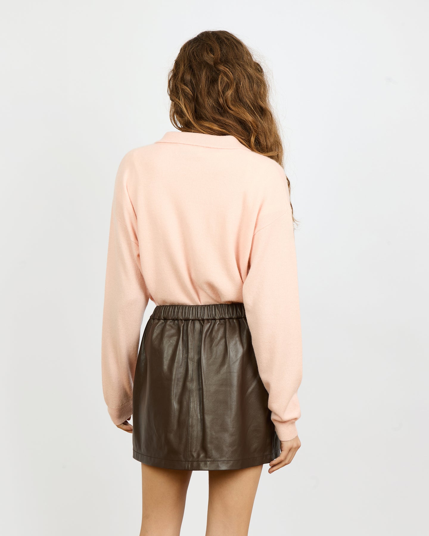 A leather mini skirt that embodies chic simplicity. It can be worn more or less high-waisted depending on your preference.