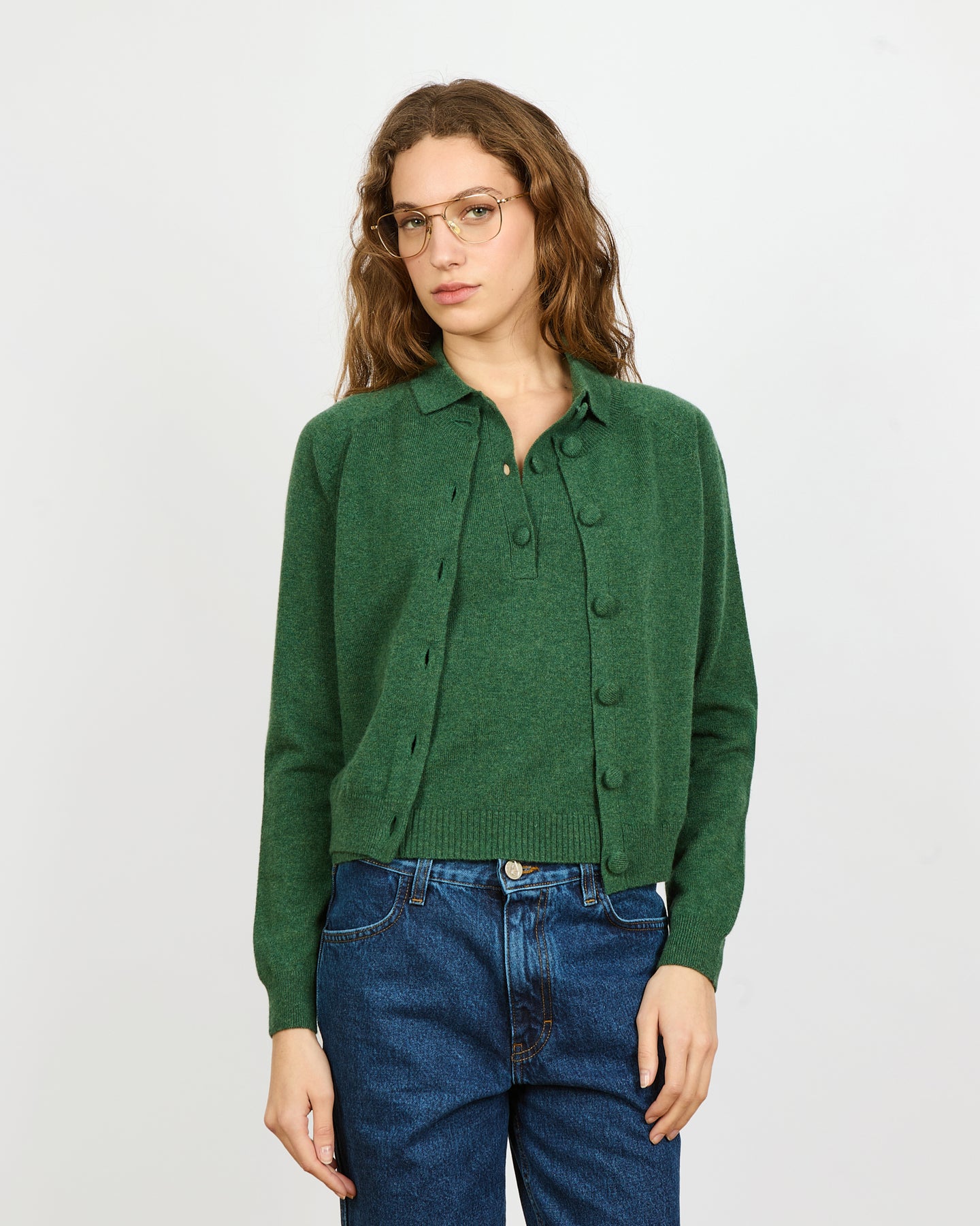 Le cardigan Mila tombe à la taille et peut se porter aussi bien ouvert que fermé.