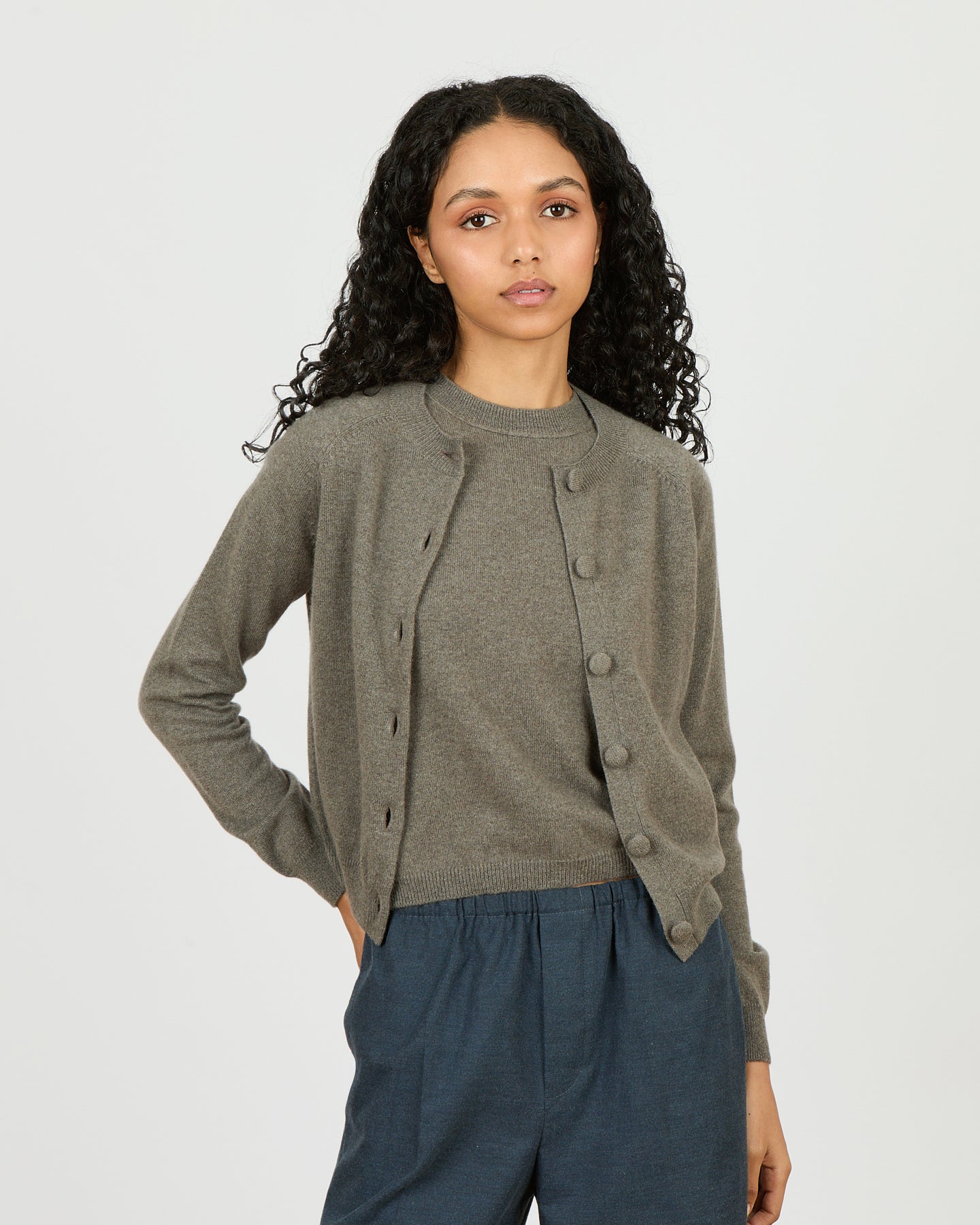 Le cardigan Mila tombe à la taille et peut se porter aussi bien ouvert que fermé.