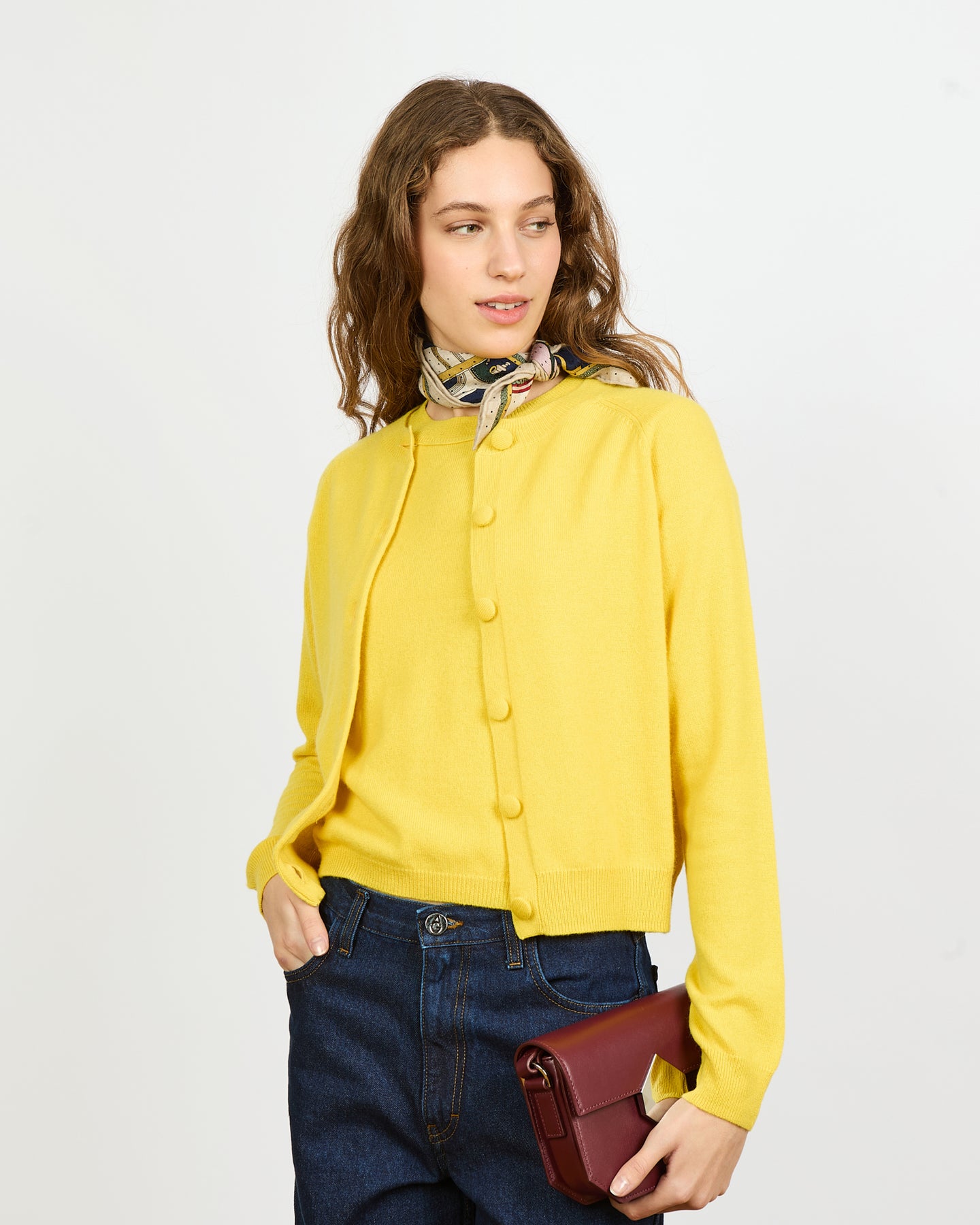Le cardigan Mila tombe à la taille et peut se porter aussi bien ouvert que fermé.