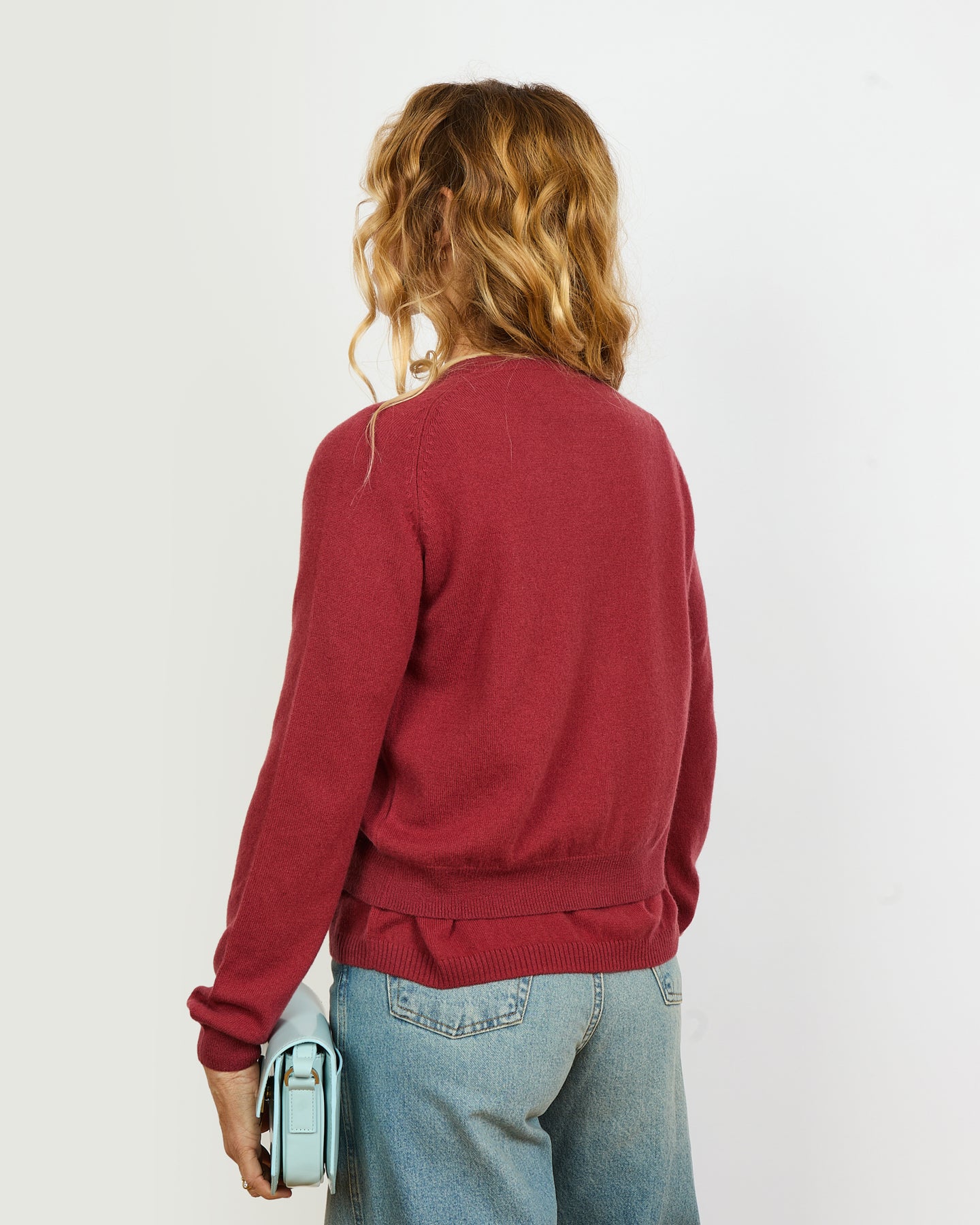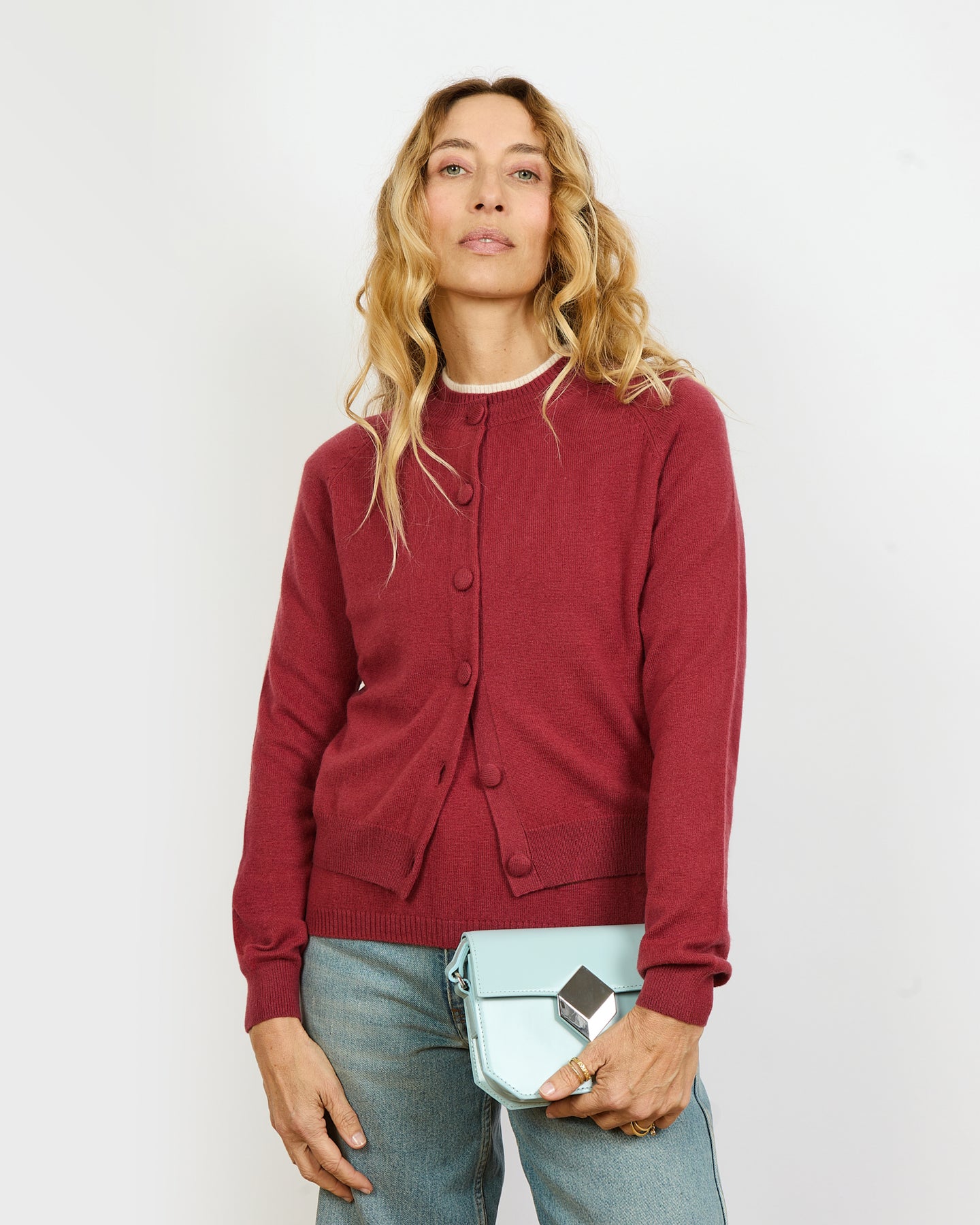 Le cardigan Mila tombe à la taille et peut se porter aussi bien ouvert que fermé.