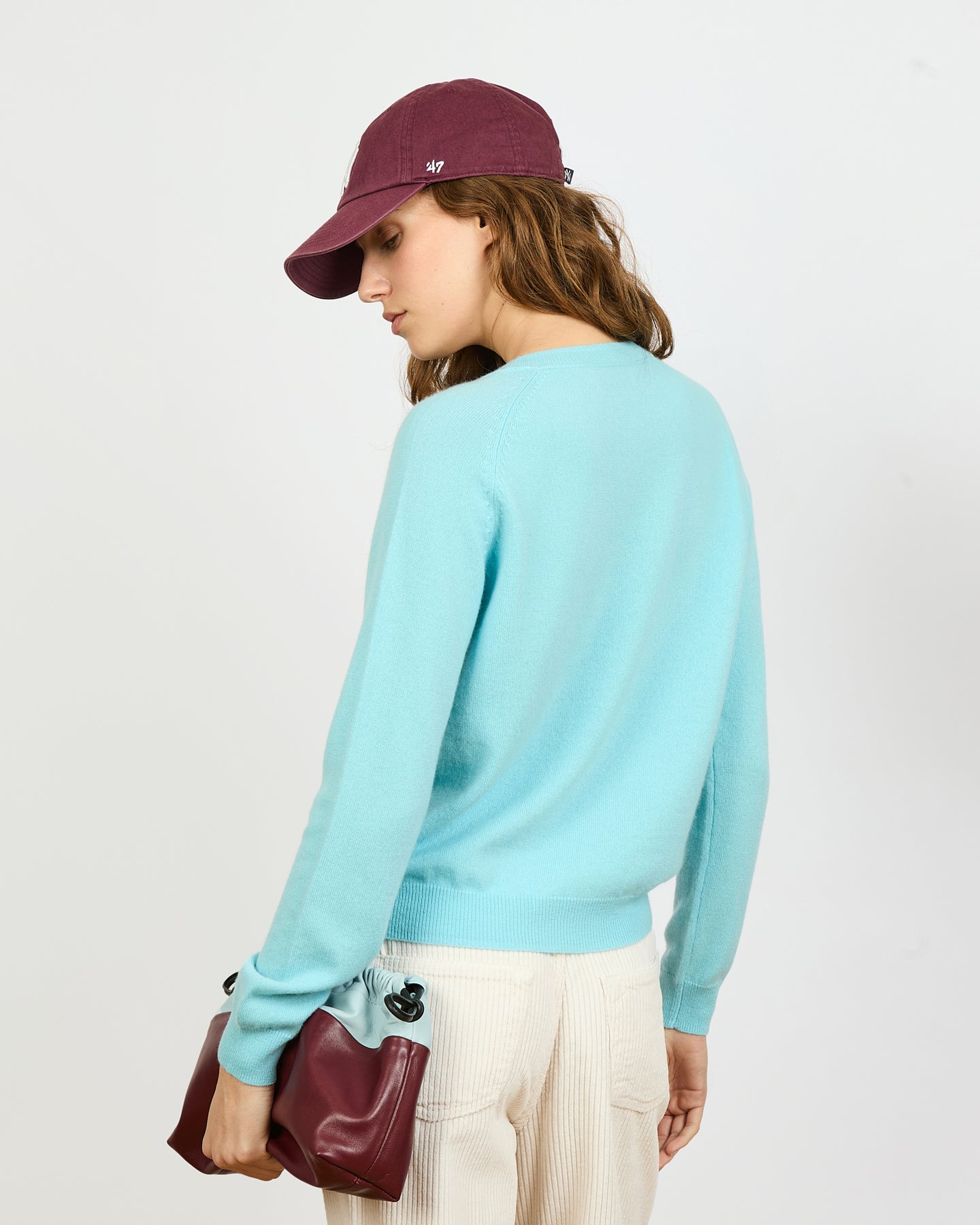Le Mila est notre pull iconique, il tombe sur les hanches et souligne la taille. Les manches raglans dessinent les épaules.