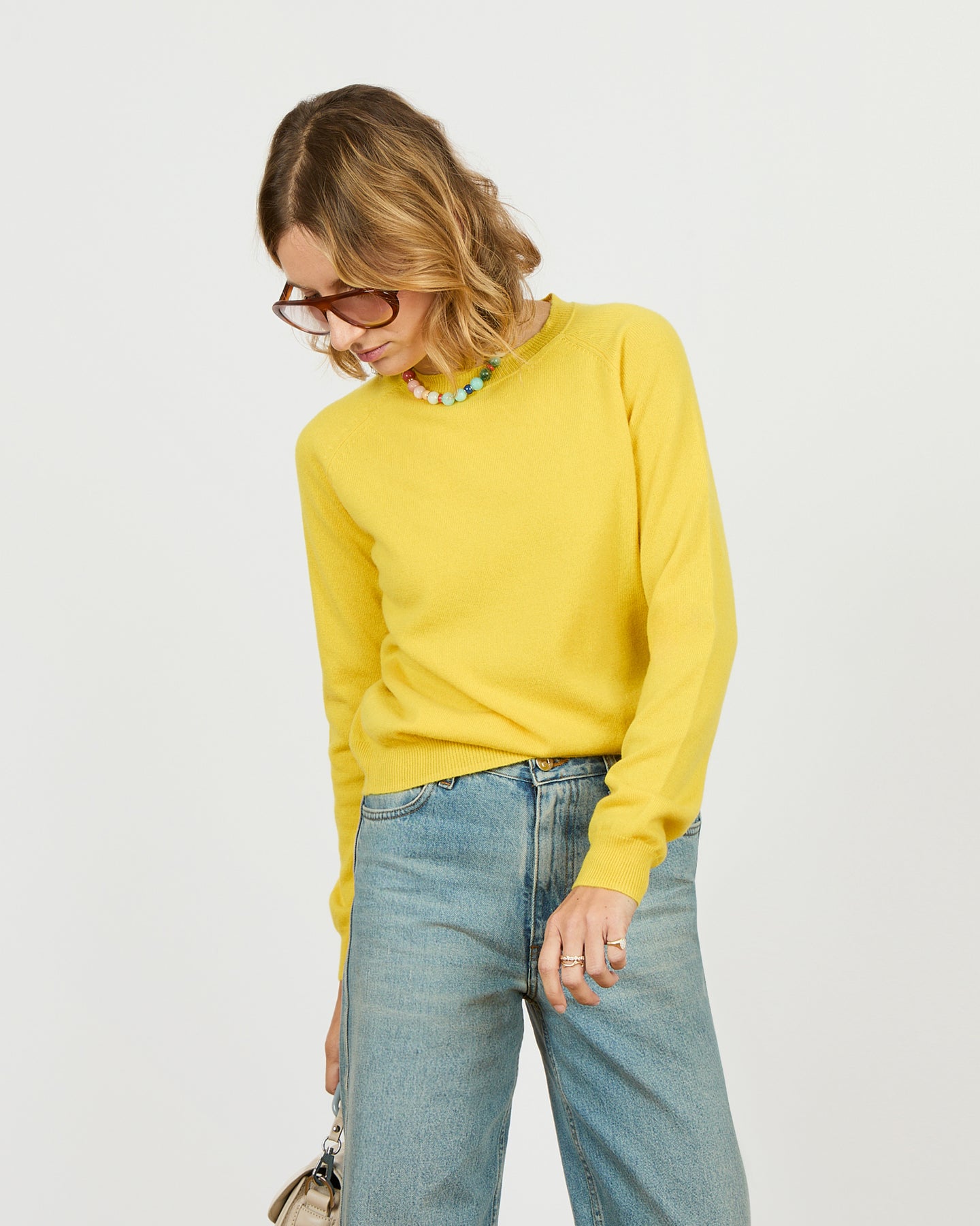Le Mila est notre pull iconique, il tombe sur les hanches et souligne la taille. Les manches raglans dessinent les épaules.
