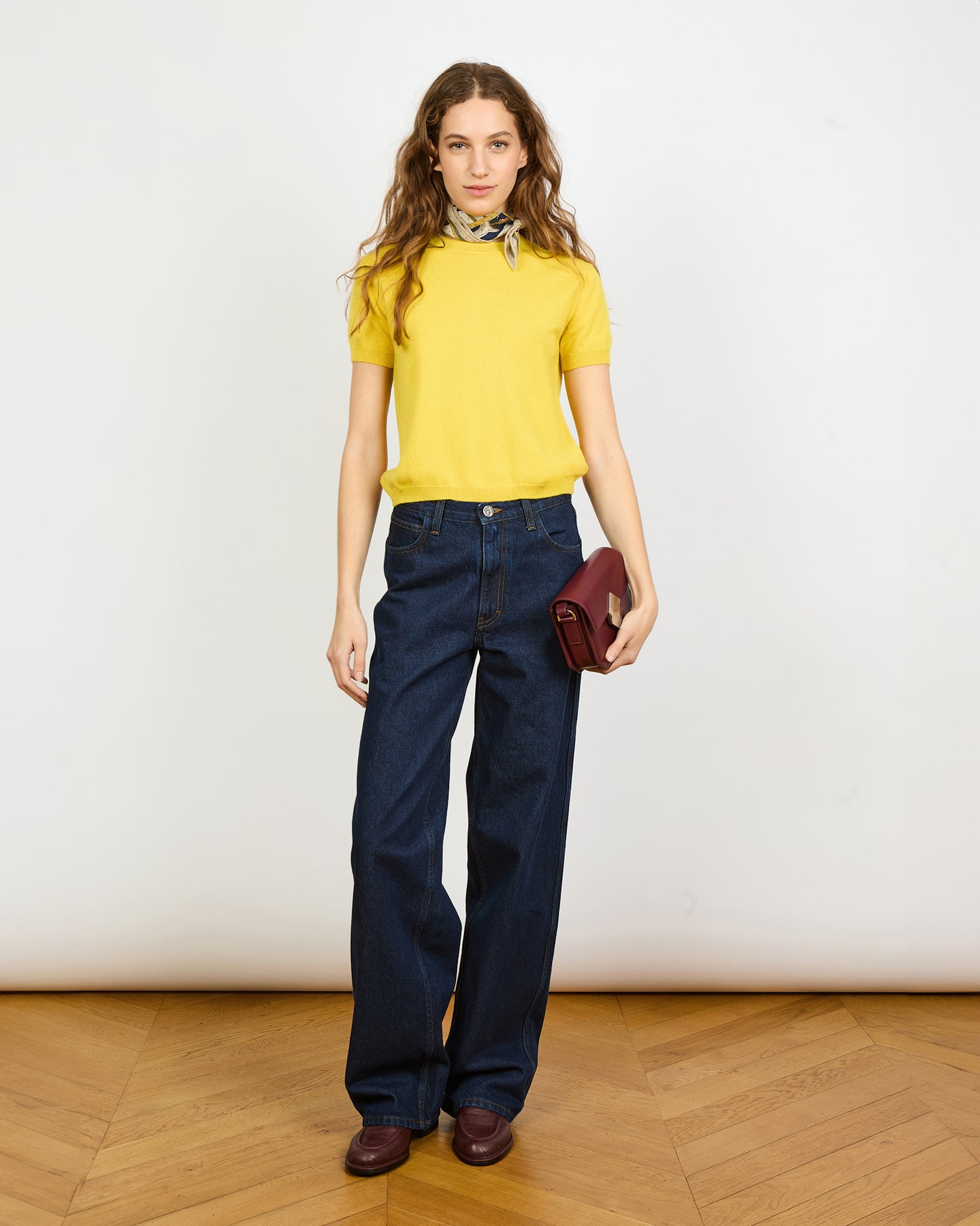Le Mini André est un petit t-shirt droit en cachemire. Il peut se porter avec le cardigan Mila pour former un twin-set.