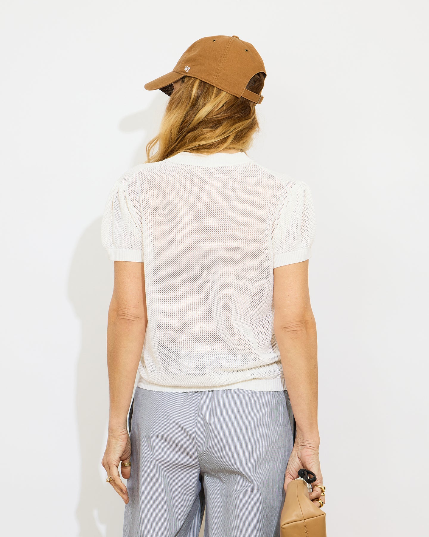 - T-shirt boxy manches ballons courtes en point résille